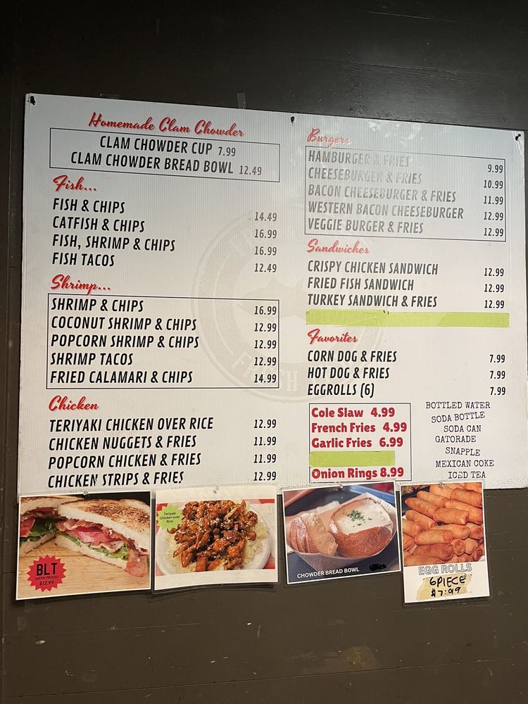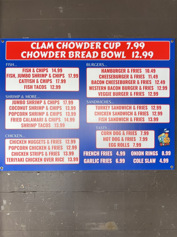 Railroad Fish & Chips stands out for its commitment to quality, offering generous portions of flaky, juicy fish and perfectly crispy chips. Customers rave about the fish tacos, which deliver a delightful mix of slaw, tartar sauce, cilantro, and perfectly fried fish, providing a messy yet satisfying experience. The clam chowder comes recommended too, served in a bread bowl that's not overly thick yet packed with flavor—an ideal choice for warming up on cooler days.